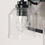 1.This Vanity Wall Sconce Lighting is made of metal construction and seeded glass shade. Antique Wood grain finish design strike a perfect balance between vintage farmhouse and modern industrial. Ideal for a variety of home decor.