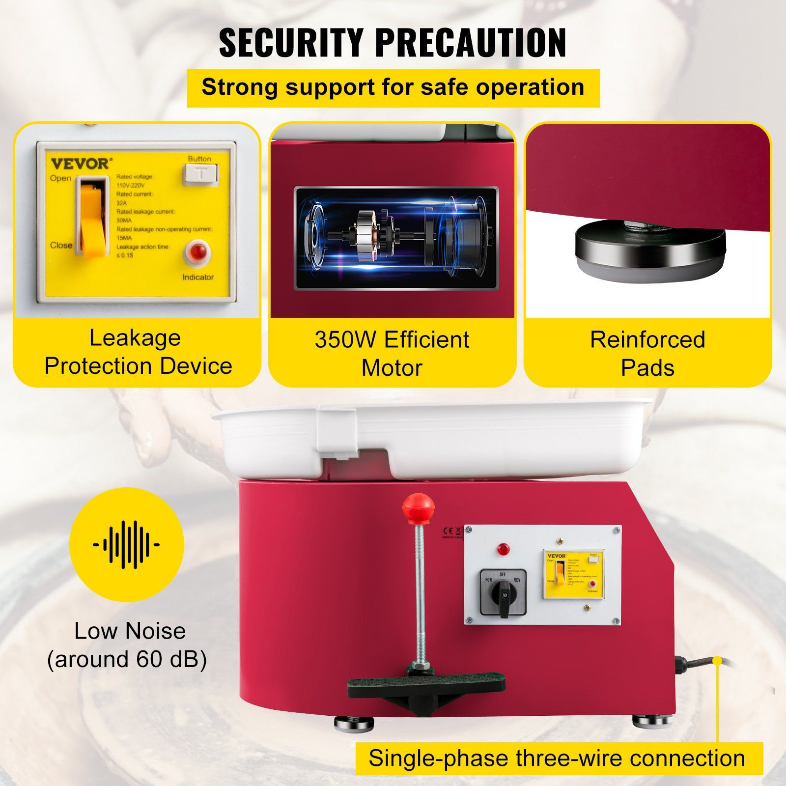 2.Flexible Operation: This pottery wheel comes with a foot pedal and a speed manual handle, rotating smoothly with low noise (less than 60dB) and 0-300 r/min effect. It can be switched clockwise or counterclockwise, enriching the flexibility of the ceramic process.
